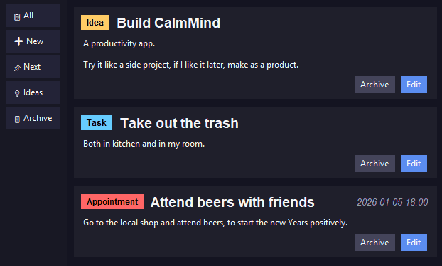CalmMind - a simple desktop app for clarity, tasks, and reminders